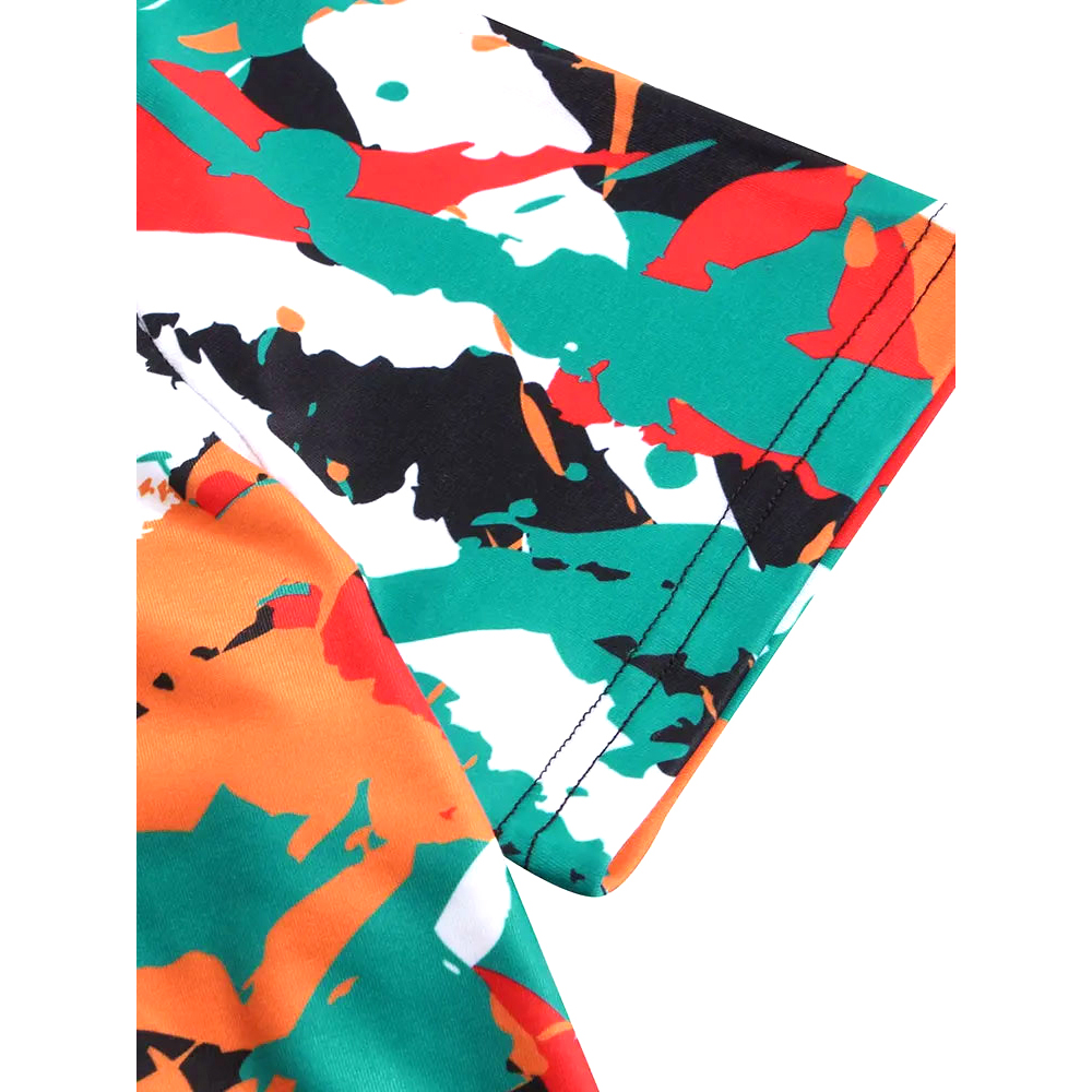 Material: 100% CottonLength: Mid-LengthSleeve Type: Regular Pattern: CamouflageEmbellishment: PrintSleeve Length: Short SleeveNeckline: Round NeckSeason: Summer
